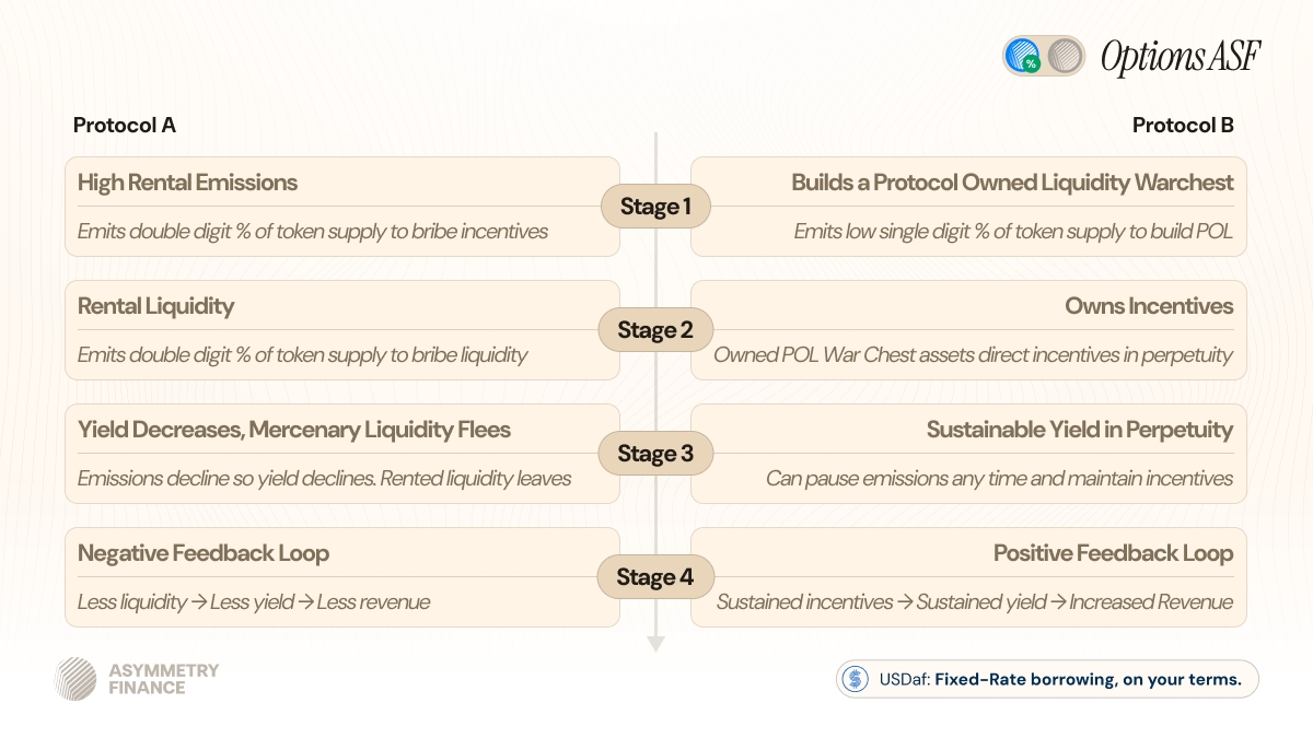POL creates a sustainable flywheeling bag (Asymmetry’s War Chest) that continues to reward users in the ecosystem. That entrenches the protocol with sustainable liquidity that grows the protocol into perpetuity.